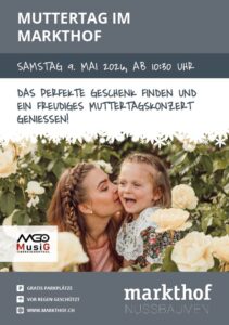 Bei uns im Markthof finden Sie ganz viele schöne und einzigartige Geschenke für Mütter zum Muttertag. Dazu gibt es von der Musikgesellschaft Obersiggenthal ein wunderbares Muttertagskonzert ab 10:30 Uhr.